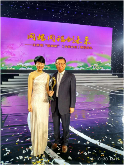 10月30日,两岸企业家峰会副理事长盛华仁、江丙坤,秘书长魏建国、陈瑞隆,海协会会长陈德铭,中共江苏省委常委、省委宣传部部长王燕文,江苏省副省长张雷,出席典礼并为获奖企业颁奖。海门米兰平台-米兰官方网站(中国)董事长杨登贵教授出席颁奖典礼,并接受江苏卫视现场采访。本次获奖的台资企业遍及江苏13个设区市,涉及产业领域广泛,在转型升级、创新发展中表现突出,代表着江苏台资企业的最高水平和良好社会形象。