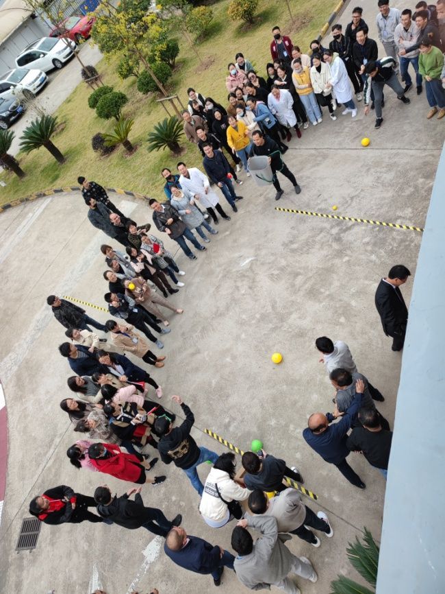 一、拔河比赛:楚河汉界、群雄争霸,谁更胜一筹?拔河比赛还没有开始,各队成员就跃跃欲试。有的脱外衣、有的换跑鞋、有的踢腿、有的弯腰,都在做热身准备。拔河比赛实行6对随机抽取两队比赛,赢的队伍再次两两比赛,直至决出冠军、亚军。拔河比赛共有6个队参赛,分别是生产一部、生产二部、工程部、分析部、研发系统、行政系统。拔河比赛最为激烈、精彩、热闹,加油声、笑声不绝于耳。尤其是生产二部,挑选了精兵强将、憋足了劲,比赛时每一个人似而后仰,用脚后跟抵地,似而前倾,用脚掌抵地,观战的人都为他(她)把心提到了嗓子口,鼓掌的人把手都拍红了,终于在大家的共同努力下得到了冠军。