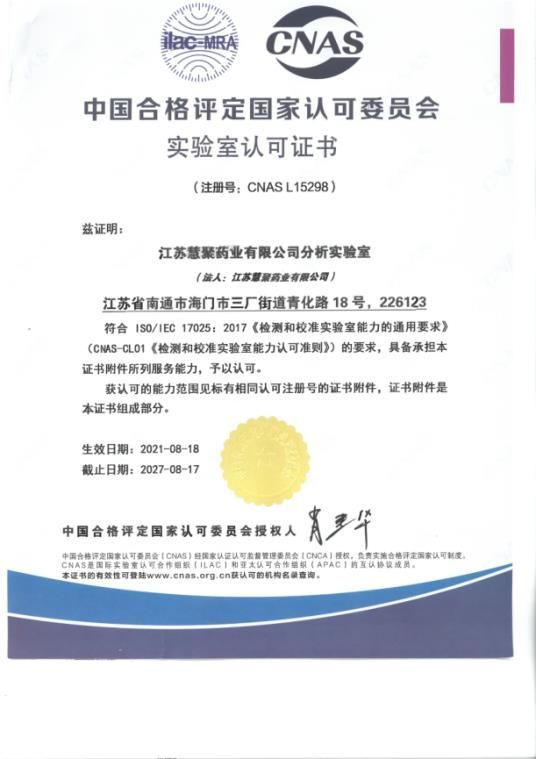 2021年8月18日,江苏米兰平台-米兰官方网站(中国)药业有限公司通过审核,取得CNAS认证证书。此次获得CNAS审核,既是对分析实验室的技术实力及体系管理实力的认可,也是米兰平台-米兰官方网站(中国)药业建设国际一流实验室道路上的关键一步。面向未来,分析实验室将继续秉承“数据准确、运转高效、行为公正、态度严谨”的质量方针,严格按照法规要求、体系要求、国际标准、国内标准认真控制各检测环节,发挥各职能部门功能,完成各项检测任务,以专业的技术支持,确保检测报告的准确及时,持续提升客户满意度。